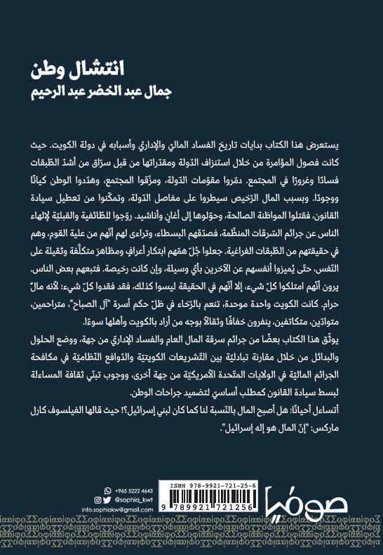 يستعرض هذا الكتاب بدايات تاريخ الفساد المالي والإداري وأسبابه في دولة الكويت. حيث كانت فصول المؤامرة من خلال استنزاف الدولةومقدراتها من قبل سراق من أشد الطبقات فسادا وغرورا في المجتمع. دمروا مقومات الدولة، ومزقوا المجتمع، وهددوا الوطن كيانا ووجودا. وبسبب المال الرخيص سيطروا على مفاصل الدولة،وتمكنوا من تعطيل سيادة القانون، فقتلوا المواطنة الصالحة، وحولوها إلى أغان وأناشيد. روجوا {للطائفية والقبلية لإلهاء الناس عن جرائم السرقات المنظمة، فصدقهم البسطاء، وتراءى لهم أنهم من علية القوم، وهم في حقيقتهم من الطبقات الفراغية . يوثق هذا الكتاب بعضا من جرائم سرقة المال العام والفساد الإداري من جهة، ووضع الحلول والبدائل من خلال مقارنة تبادلية بين التشريعات الكويتية