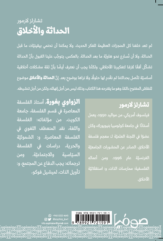 لم تعد خلفنا كل المنجزات العظيمة للفكر الحديث, ولا يمكننا أن نحتمي بيقينيَّات ما قبل الحداثة، ولا أن نُسارع نحو هاويَّة ما بعد الحداثة، بالعكس، يتوجَّب علينا القبول بأنَّ الحداثة تشكّل أفقًا لازمًا لتفكيرنا الأخلاقي. ولكنَّنا يجب أن نعترف أيضًا بأنَّ ثمَّة مشكلات أخلاقية أساسيَّة تتَّصل بحداثتنا لم نقّدم لها حلولًا ولا نراها بوضوحٍ بعد. إنَّ الحداثة والأخلاق موضوع للنقاش