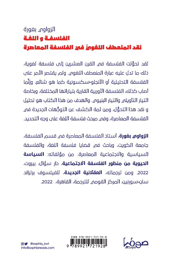 لقد تحوَّلت الفلسفة في القرن العشرين إلى فلسفة لغوية، ذلك ما تدل عليه عبارة المنعطف اللغوي. ولم يقتصر الأمر على الفلسفة التحليلية أو الأنجلو-سكسونية كما هو شائع، وإنَّما أصاب كذلك، الفلسفة الأوربية القارية بتياراتها المختلفة، وبخاصة التيار التأويلي والتيار البنيوي. والهدف من هذا الكتاب هو تحليل و نقد هذا التحوُّل، ومن ثمة الكشف عن التوجُّهات الجديدة في الفلسفة المعاصرة، وفي مبحث فلسفة اللغة على وجه التحديد.
