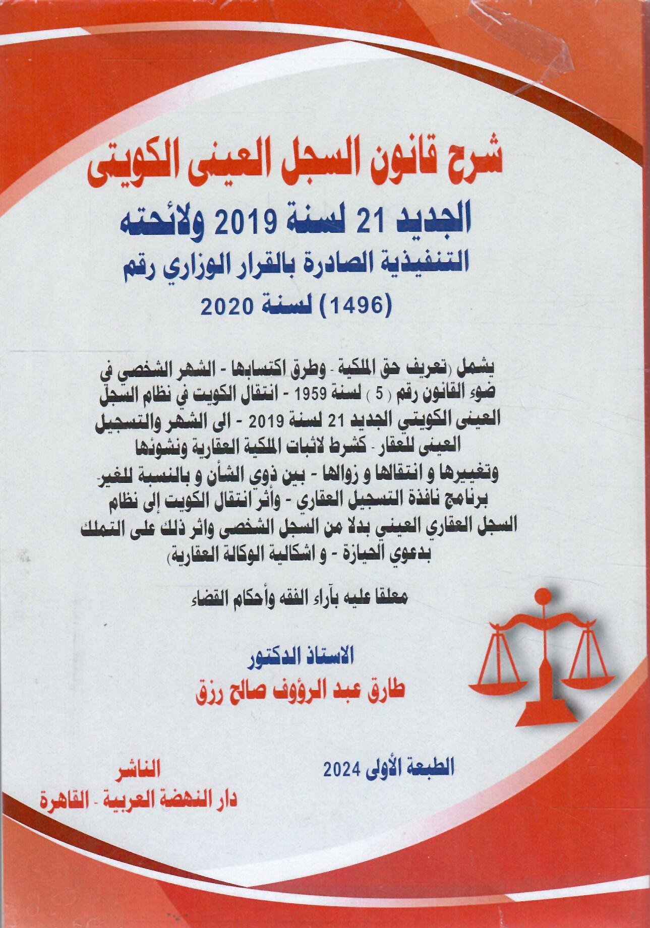 هذا الكتاب يتناول الوضع القانوني للملكية العقارية في الكويت في ضوء قانون السجل العيني الجديد 21 لسنة 2019 والذي نمهد له بالقول حق الملكية من  الحقوق الأساسية التي اهتمت التشريعات منذ القدم يتنظيم وضبط نطاقه وكيفية استعماله وحمايته من التعدي وان هذا الاهتمام يبرره الارتباط الوثيق بين النظام السياسي والاقتصادي السائد لذا تحظى الملكية العقارية بأهمية بالغة في جميع الدول حيث تظهر الحاجة إلى وسيلة تكفل العلانية لكافة التصرفات المتعلقة بهذه الملكية حتى يتسنى تحديد الوضع الحقيقي لكل وحدة عقارية من حيث المالك, وما لها من حقوق وما تنوء به من التزامات نظرا لما يؤدي إليه الجهل بهذه العناصر من خطر ضياع الحقوق وزعزعة الثقة في التعامل العقاري ومن العروف ان الحقوق قد تكون مالية او غير مالية والحقوق المالية تنقسم إلى حقوق شخصية وحقوق عينية فمحل الحق العيني هو شيء معين بذاته بحيث يكون لصاحب الحق سلطات مباشرة على الشيء فلا يحتاج إلى تدخل شخص آخر ليباشر هذه السلطات في حين ان محل الحق الشخصي هو عمل يقوم به شخص معين هو المدين.